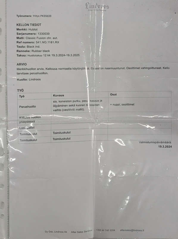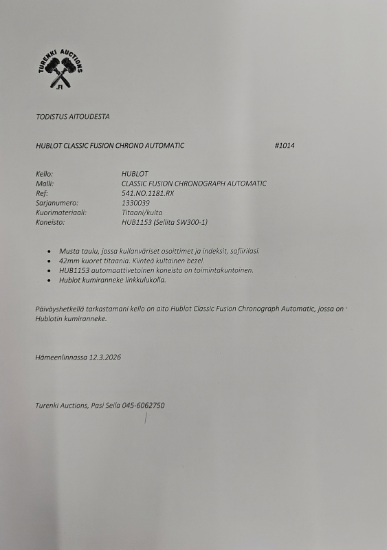 Halkaisija 42mm. Mukana aitoustodistus. Ref: 541.NO.1181.RX