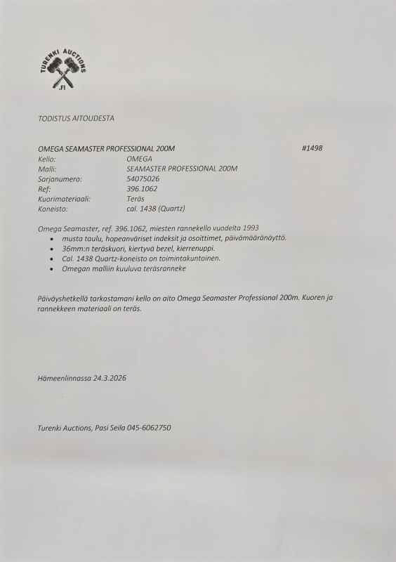 #1498 Rannekello: Omega Seamaster Professional 200M