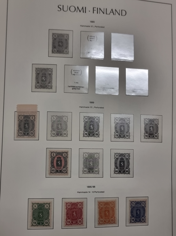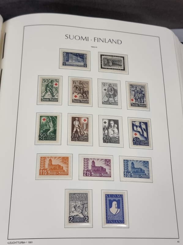 #1924 - 6 kansiollista suomalaisia postimerkkejä + tyhjä kansio