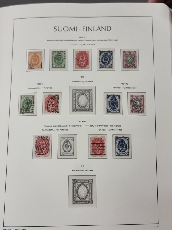 #1925 Kansiollinen suomalaisia postimerkkejä. Isohampaisia