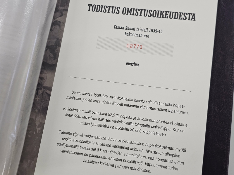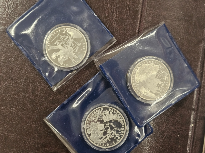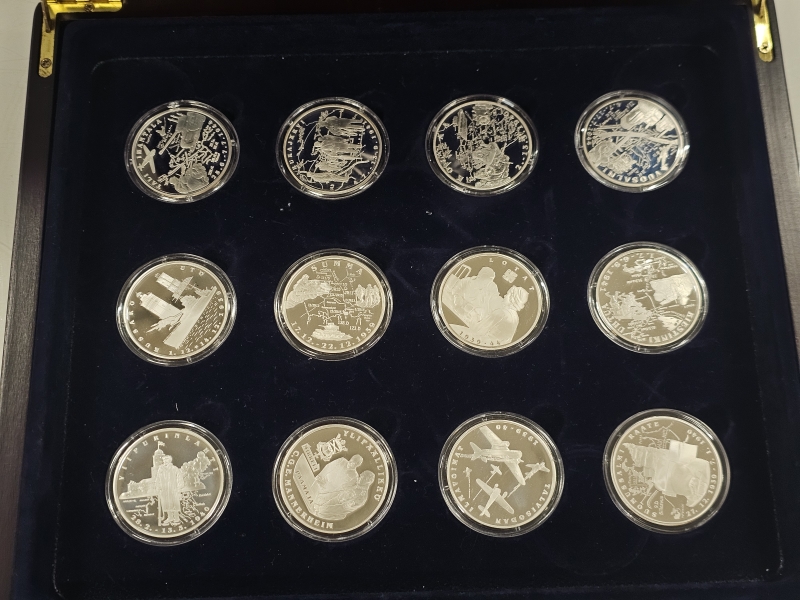 #964 15kpl hopeisia Suomi taisteli 1939-45 mitaleita, 925h, 390g