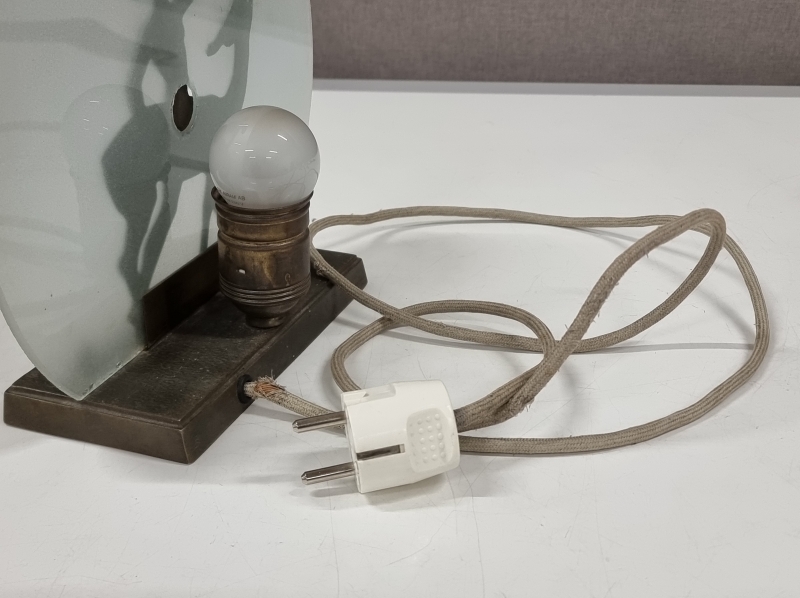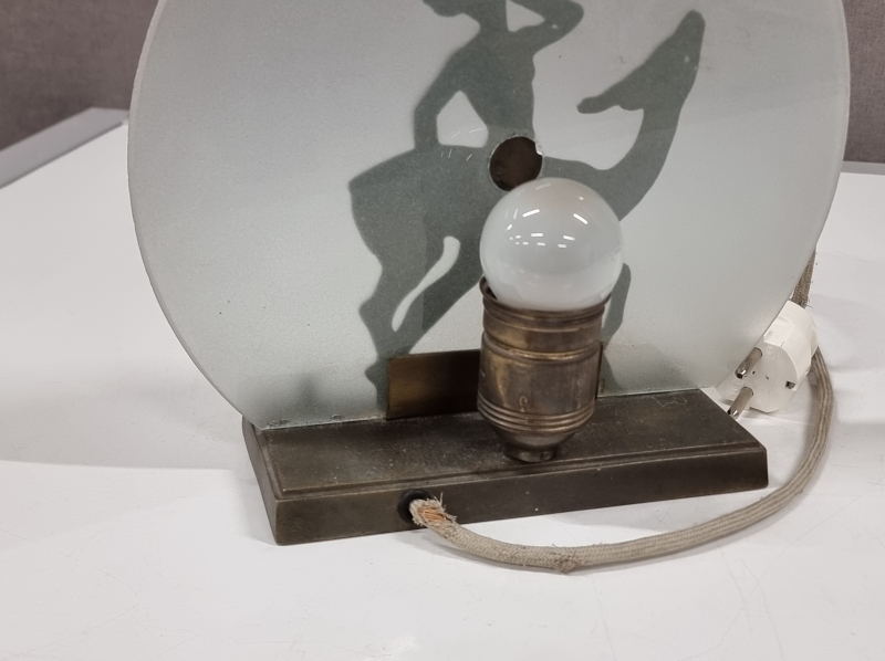 Sähköt uusittava ennen käyttöä. Lasissa pieniä kolhuja. Leveys 25cm ja korkeus 24cm.