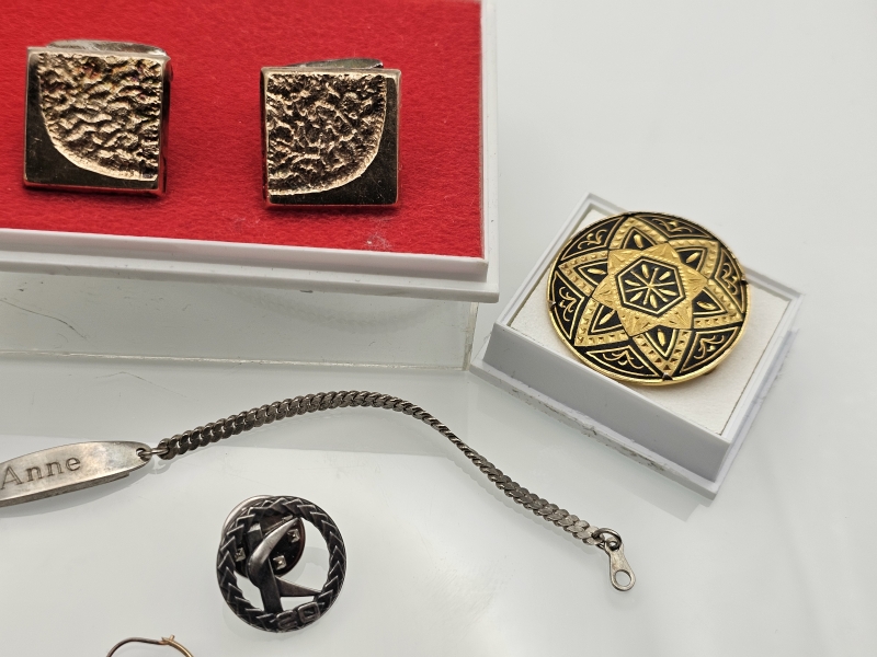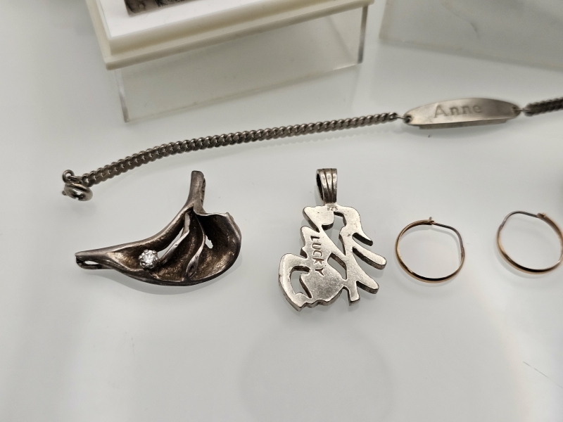 #996 Erä koruja joista osa hopeaa [36g] ja 14k kultaiset korvakorut 0,37g