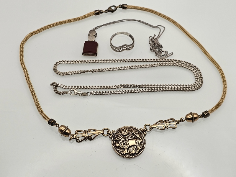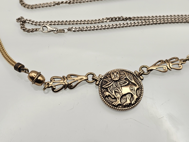 #1011 - Hopeakoruja & Kalevala koru pronssinen Aurinkoleijona kaulakoru