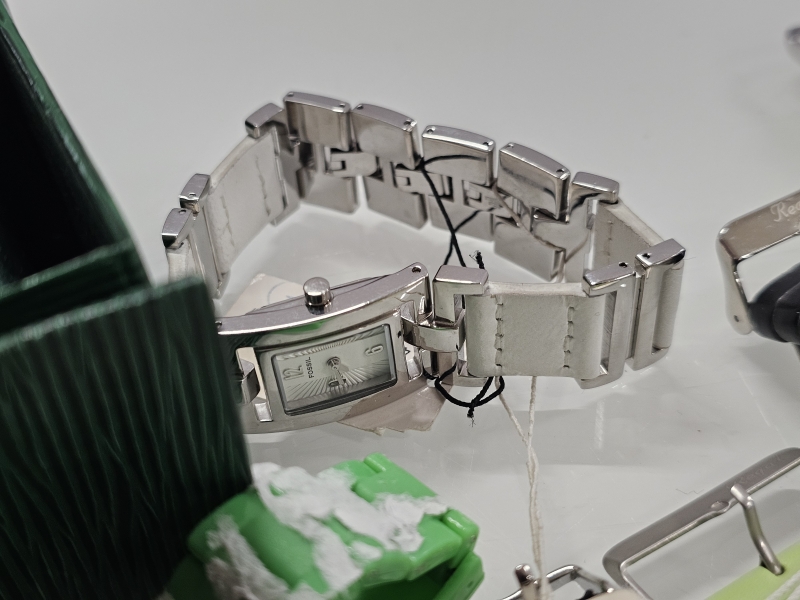 #1814 Erä kelloja: Mm. Fossil, Leijona, Tissot kelloriipus