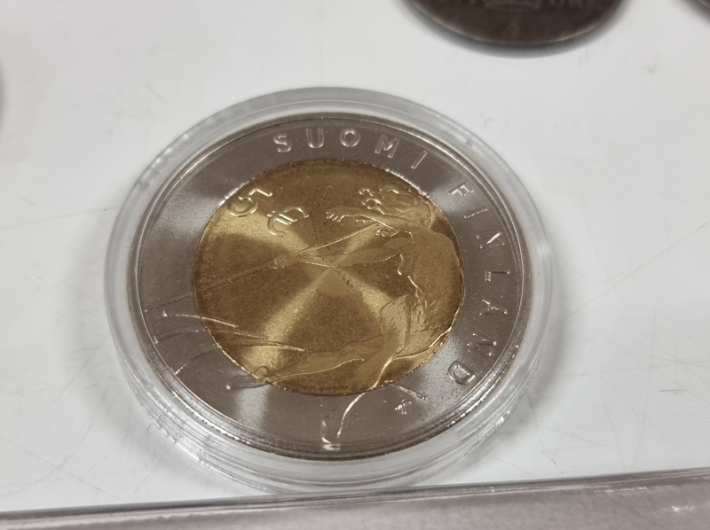#2150 Erä kolikoita ja kunniamerkkejä, mm. 5€ Yleisurheilun MM-kilpailut 2005