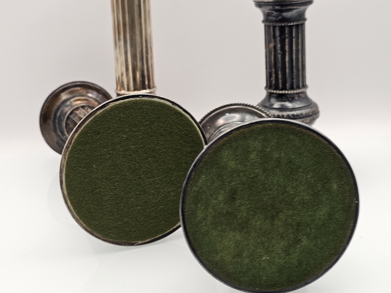 #861 - 2+2kpl hopeisia Pilari -kynttilänjalkoja, 830h, br. 656g