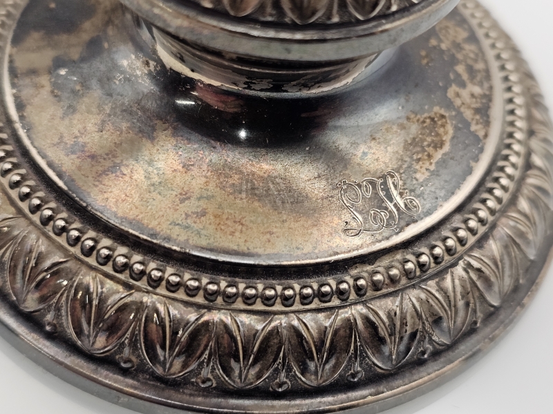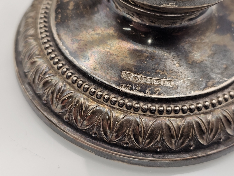 #863 4kpl hopeisia Pilari -kynttilänjalkoja, 813-830h, br. 559g