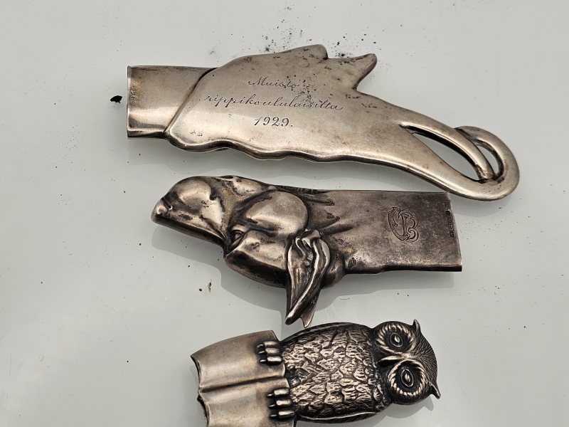 #874 3kpl hopeisia paperiveitsien päitä, 813-830h, br. 122g