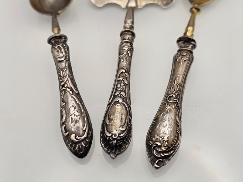 #876 3kpl vanhoja koristeellisia hopeaottimia, 813-875h, br. 124g