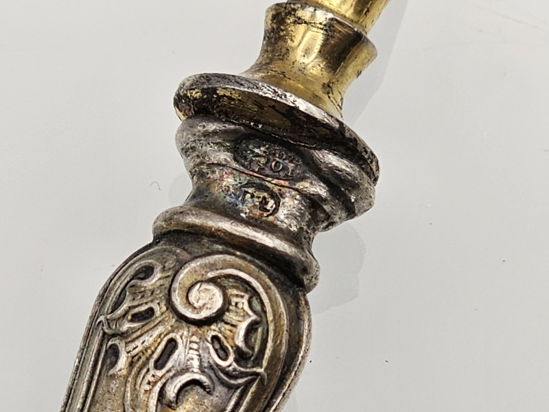 Bruttopaino 124g. Kaiverrukset. Pisin 19,7cm. Pisimmässä myös terä hopeaa
