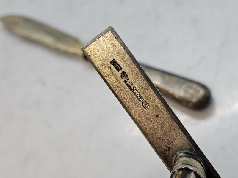 Bruttopaino 105g, kahdessa teräkin hopeaa. Pisin 16,6cm