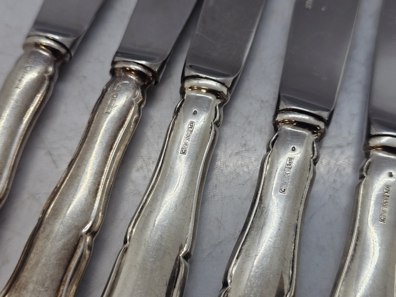 #881 - 7kpl hopeisia chippendale -veitsiä teräskärjillä, 830h, br. 532g