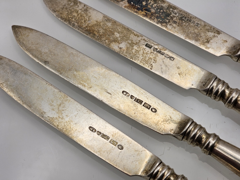 #882 4kpl hopeisia hedelmäveitsiä, Wilhelm Porthan, Viipuri 1892-97, 813h, br. 114g