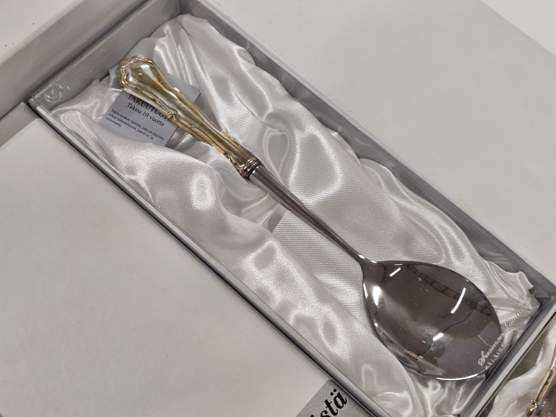 Pitoisuus 830/1000, kärjet hopeaa. Ei kaiverruksia