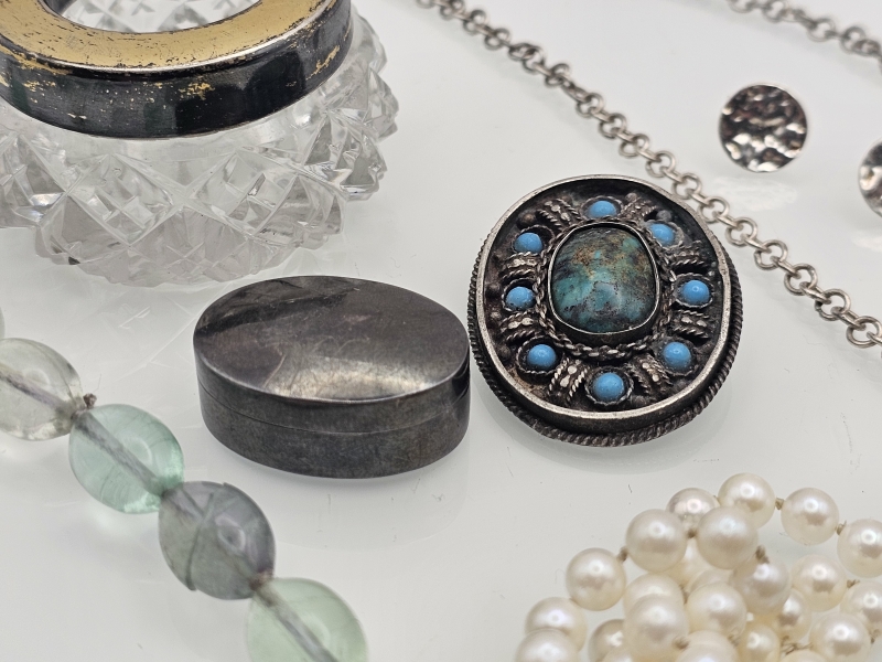 #899 - Erä hopeakoruja ja muuta hopeaa, mm. venäläinen suolakko