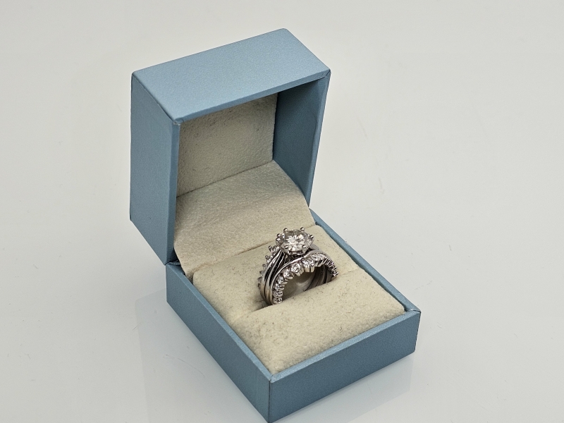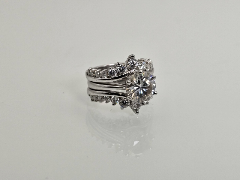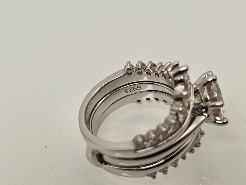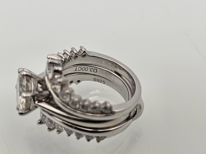 #905 - Hopeinen kaksiosainen sormus jossa yli 3,00ct moissaniitteja