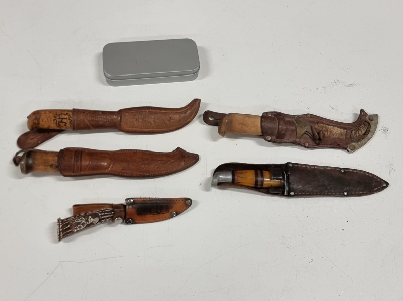 #2170 5kpl puukkoja ja linkkuveitsi, mm. Marttiini eräpuukko