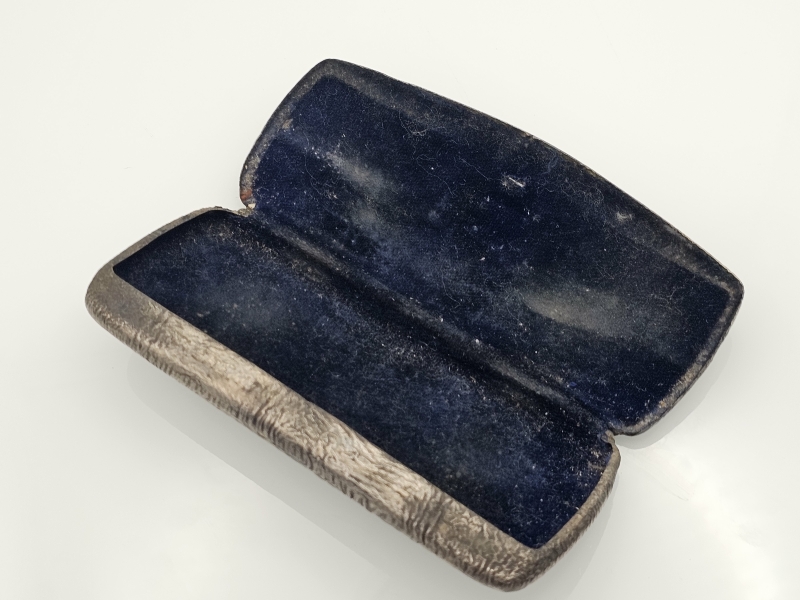 #909 - Hopeinen samorodok silmälasikotelo 14k kultaisella monogrammilla, 813h, br. 90g