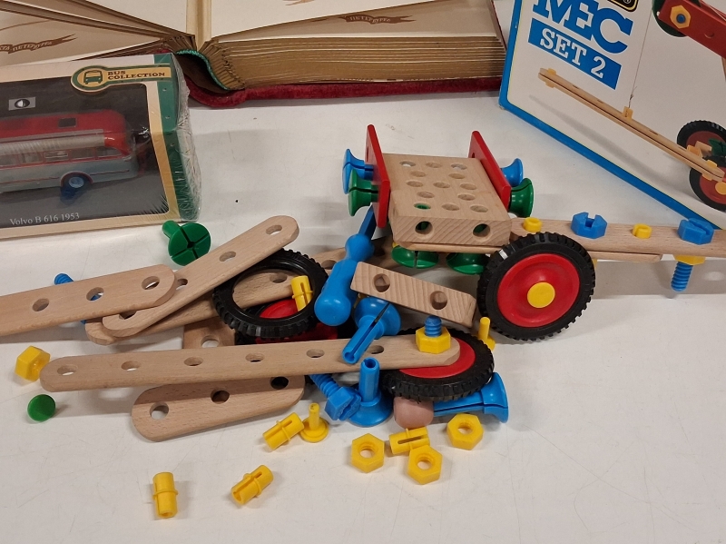 #2421 - Erä sekalaista tavaraa mm. Arabia seinälautanen, Volvo B 616 pienoismalli, valokuvakansio ym.