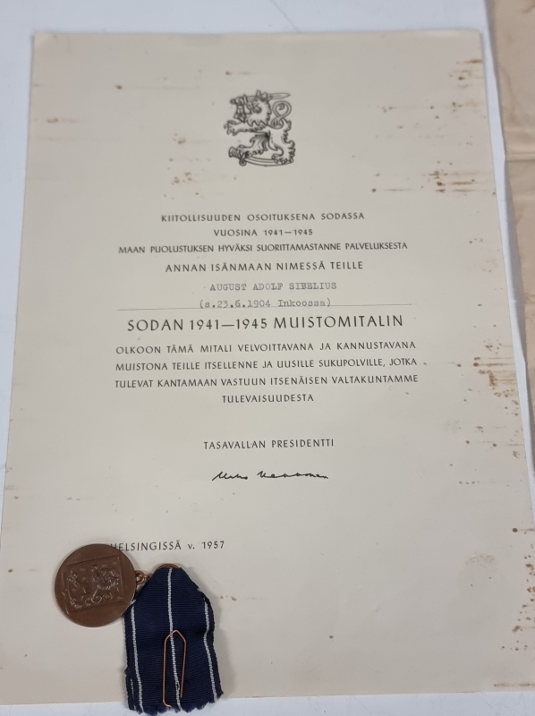 #1832 - Erä myöntökirjoja ja jatkosodan muistomitali ym. nimillä Sibelius, Rosenlew
