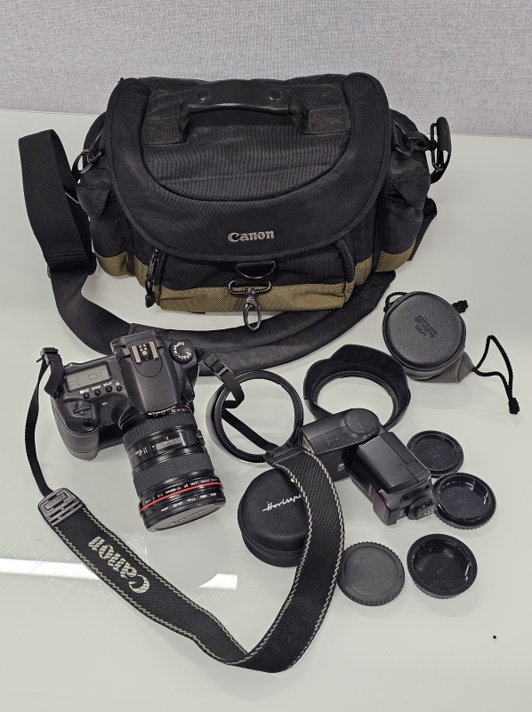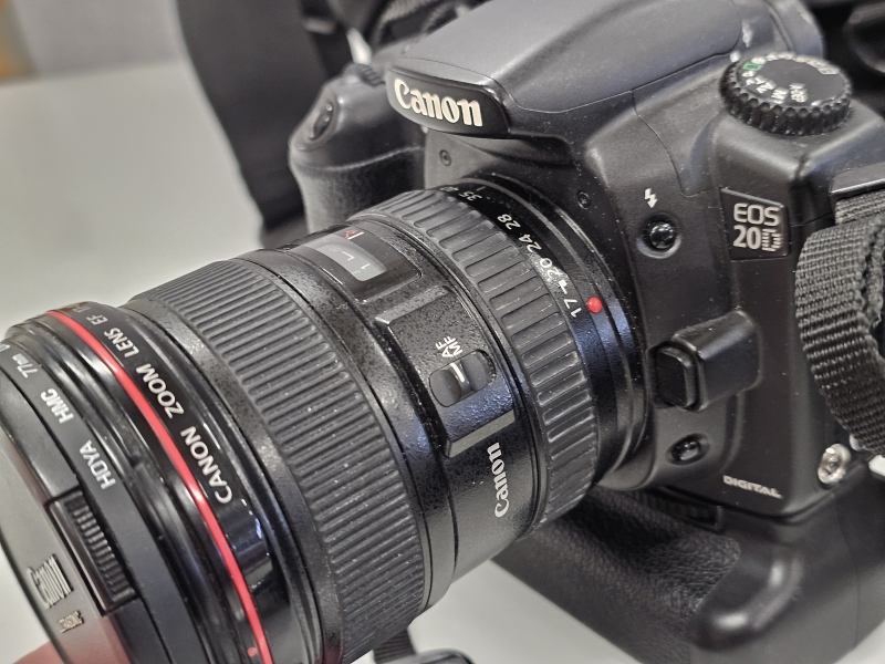 #2420 - Canon EOS 20D kamera, laukku ja tarvikkeita