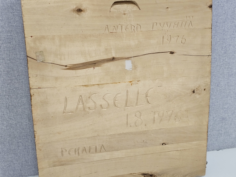 #1831 Lasse Pihjalamaalle kuulunut Antero Pyyhtiän valmistaja puureliefi + kuva
