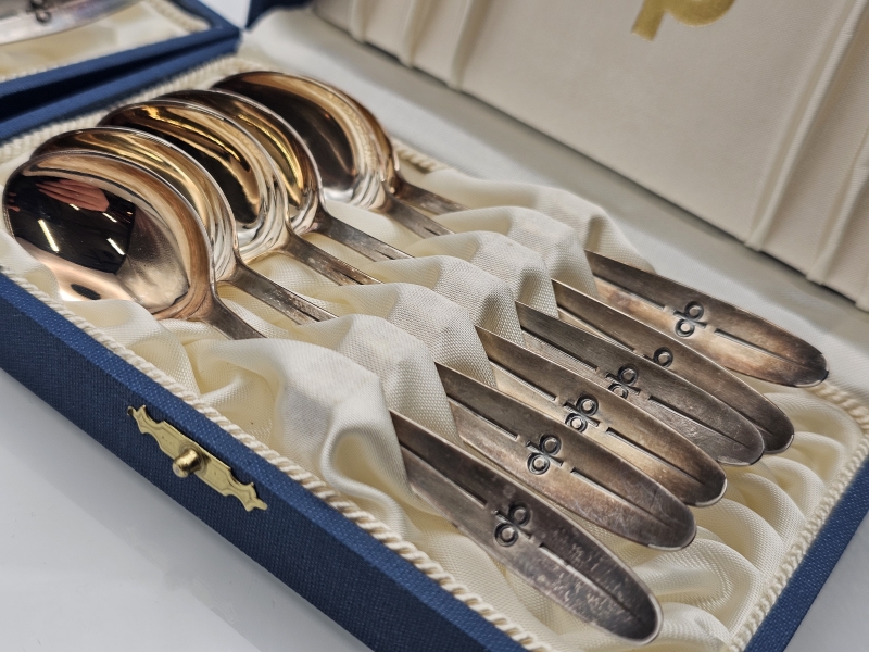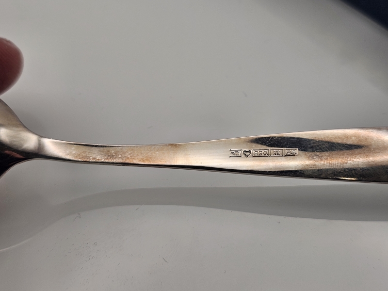 #818 12kpl hopeisia Osuuspankki kahvilusikoita, 830h, 143g