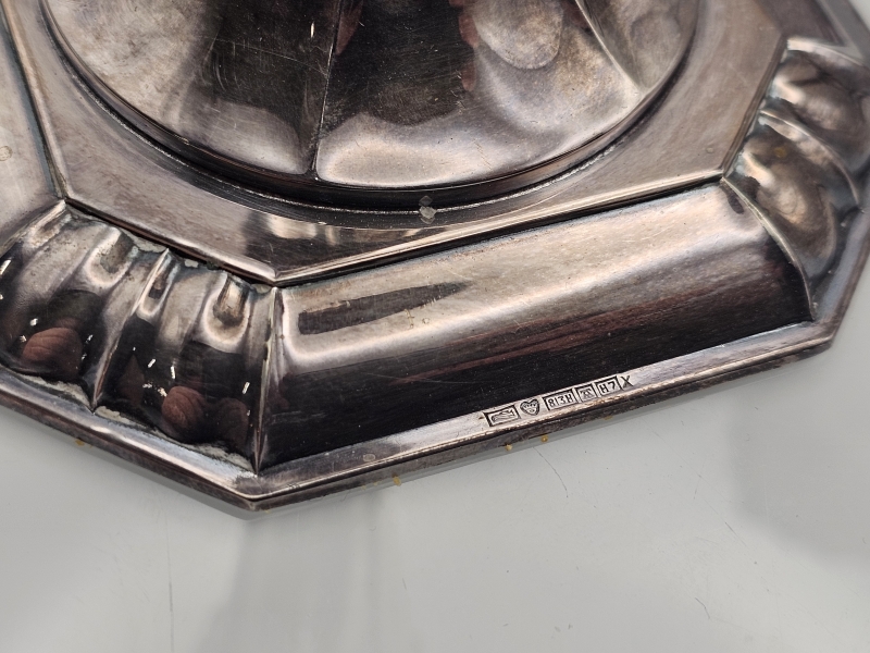 #1050 - 2kpl hopeisia kynttilänjalkoja v.1961, 813h, br. 390g