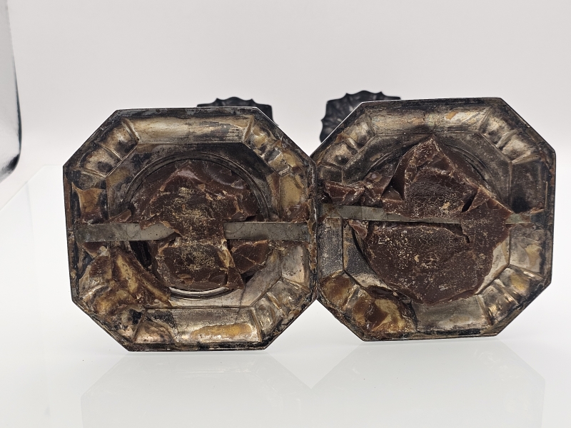 #1050 2kpl hopeisia kynttilänjalkoja v.1961, 813h, br. 390g