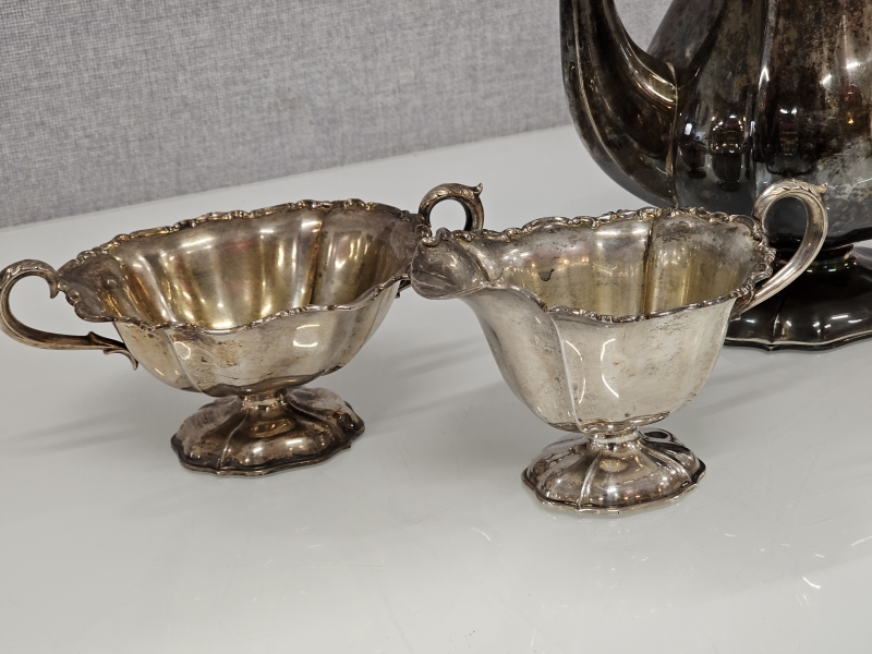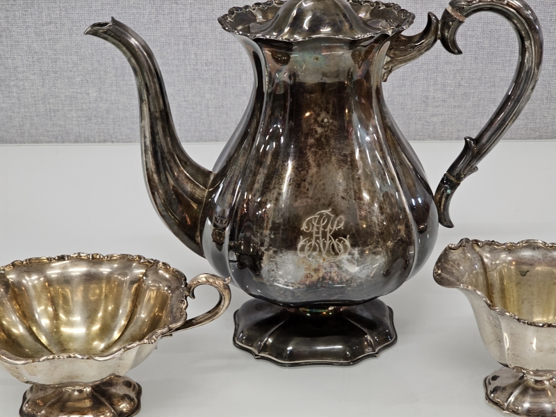 #1102 Hopeinen 3-osainen kahvikalusto, 813h, 880g