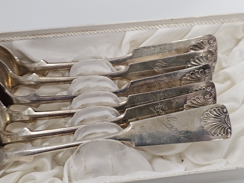 #1076 - 6kpl isoja hopeisia musla -lusikoita, 813h, 294g