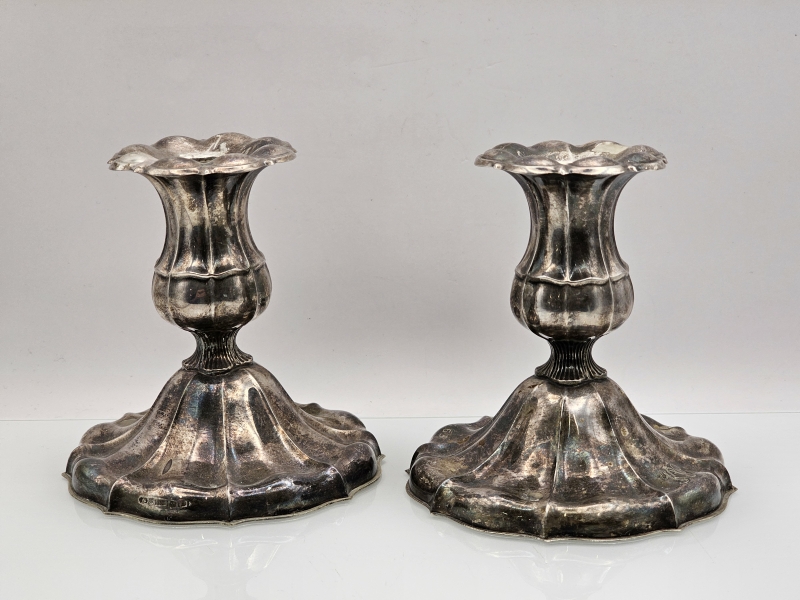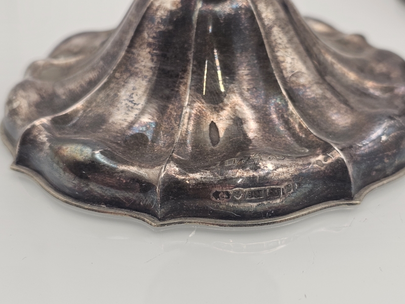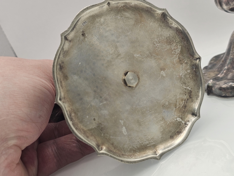 #1107 - 2kpl hopeisia kynttilänjalkoja, 813h, br. 305g
