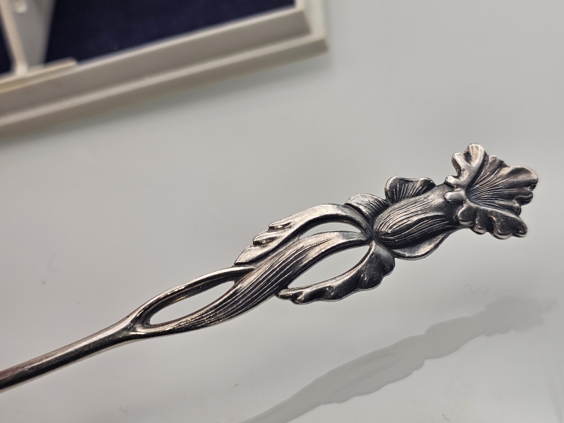 #1061 - 6kpl hopeisia kukka -kahvilusikoita, 813-830h, 62g